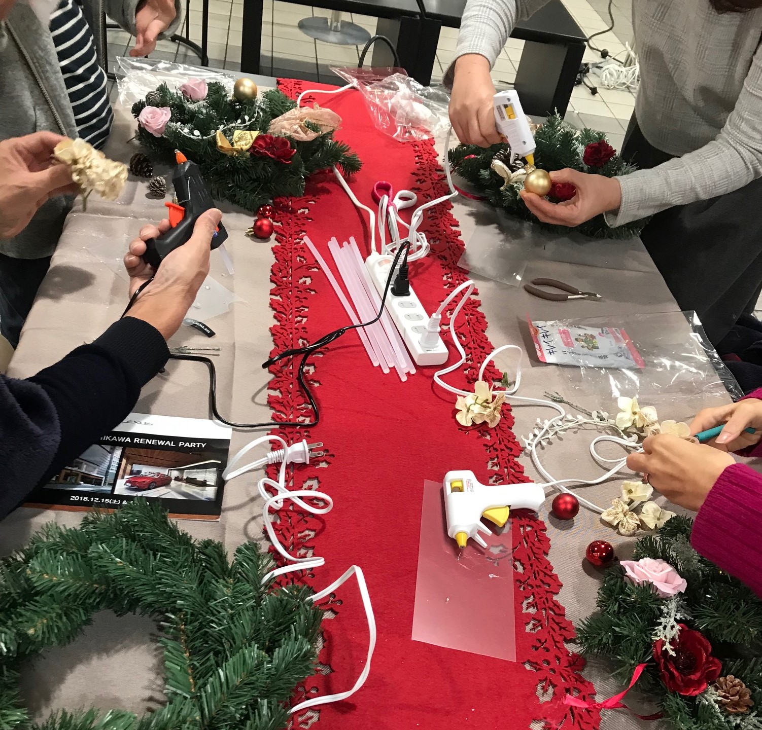 レクサス小石川 レクサス小石川 ~ リニューアルパーティー ~ コンテンツ:クリスマスリース、ボタニカルキャンドル 人数:200人 エリア:東京 会場:レクサス小石川 クライアント:株式会社サンジ・インターナショナル リニューアルオープンを兼ねたパーティーで、ワークショップを担当。リースは定番の人気コンテンツで、とても華やかな仕上がりにご満足いただきました。キャンドル作りのワークショップは、「初めて参加した」という方も多く、貴重な体験ができたと喜んでいただきました。