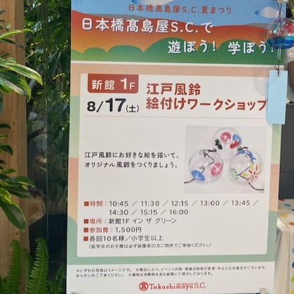 8月17日(土)日本橋高島屋にて【江戸風鈴の絵付け】ワークショップ